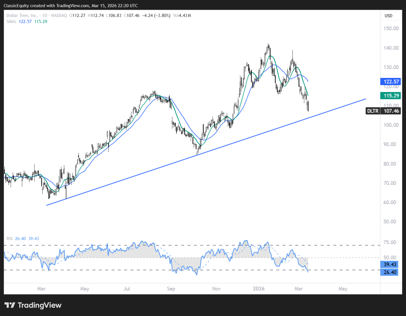 On the Q’s, the playbook is simple, watch for the 200D to hold.