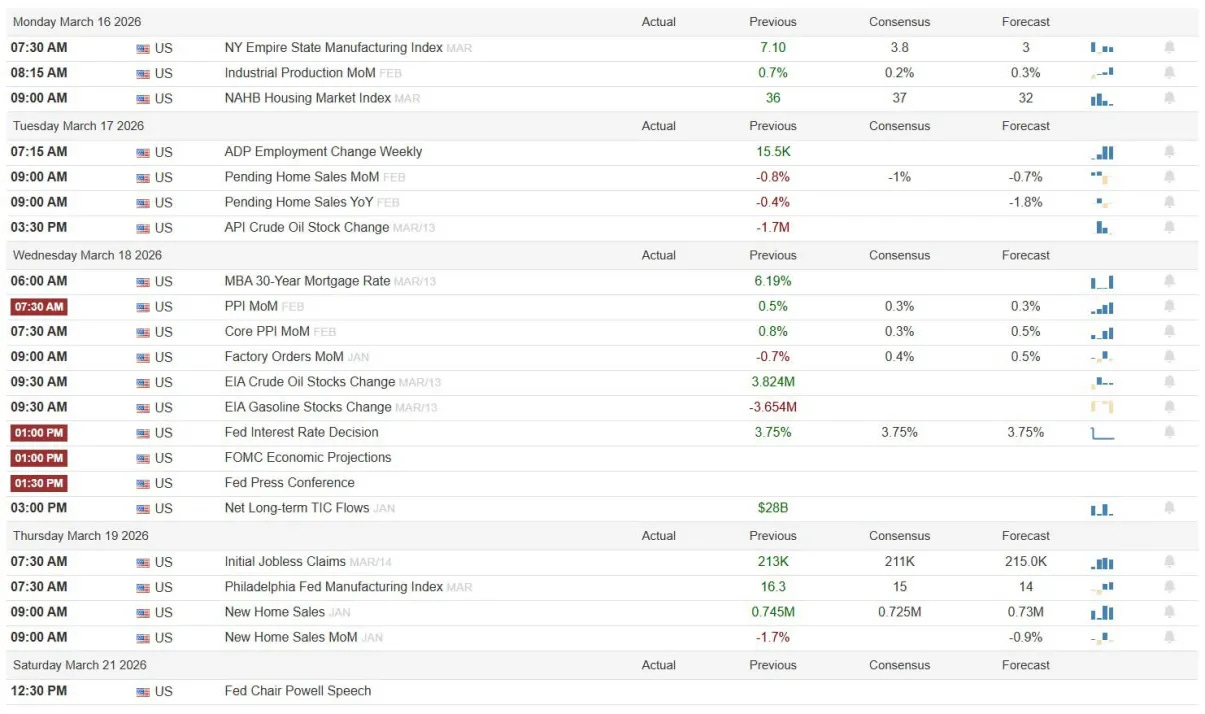 The Week Ahead 3/15/26