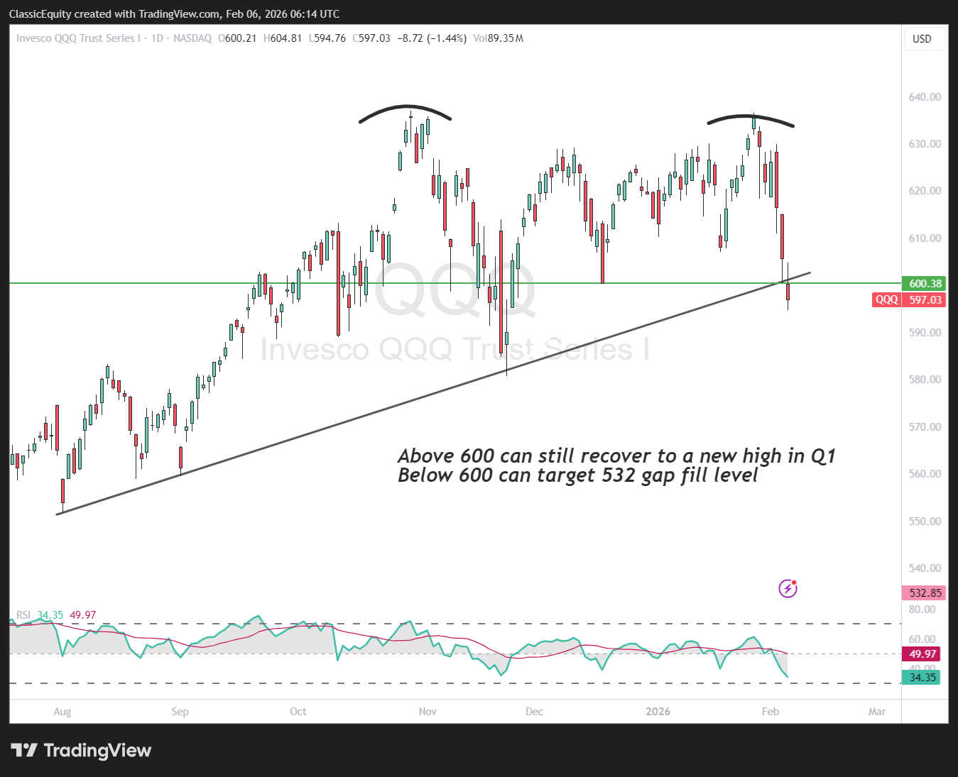 600 Level key to confirm the double top neckline
