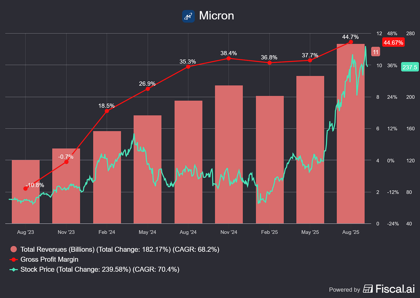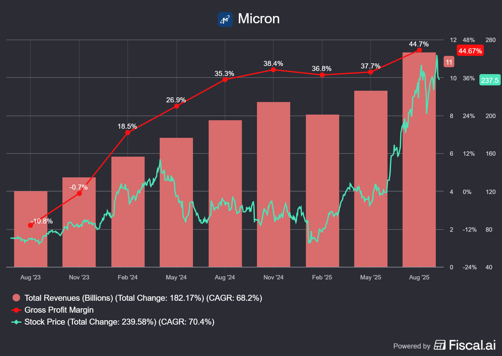 HBM is the crown jewel here. Micron’s HBM3E product is now shipping to Nvidia and other AI chip makers, and management has guided that HBM revenue will exceed $8 billion in fiscal 2025—a massive jump from essentially zero two years ago. Gross margins have expanded meaningfully as the mix shifts away from commodity PC/mobile DRAM toward these higher-margin, AI-specific products. Operating leverage is strong, and free cash flow generation is back after years of cyclical trough conditions.