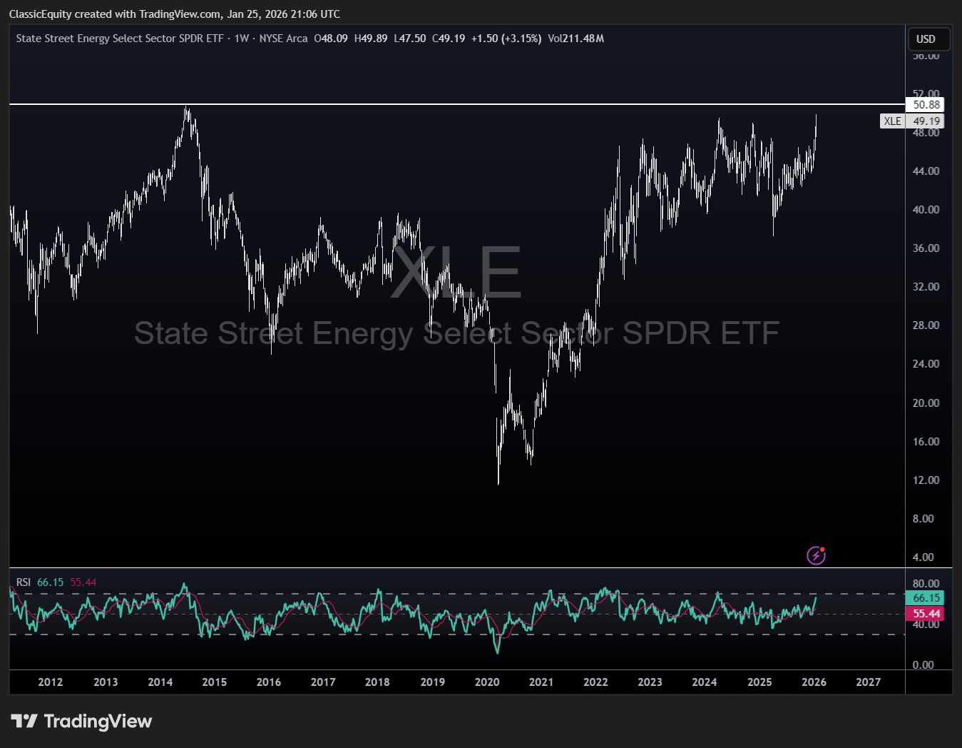Energy - plenty of bullish flow, performing strong and plenty of catalyst around Iran escalation and geopolitical risk in general. It has had plenty of false breakouts of late, but could that be coming to an end? Should XLE tag the 51 area soon that will be a key watch to see if it rejects.