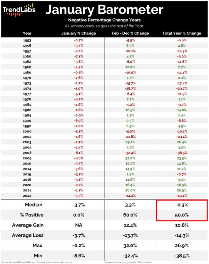 But don’t forget the importance of a positive January, a negative month drastically reduces average performance historically for the market.